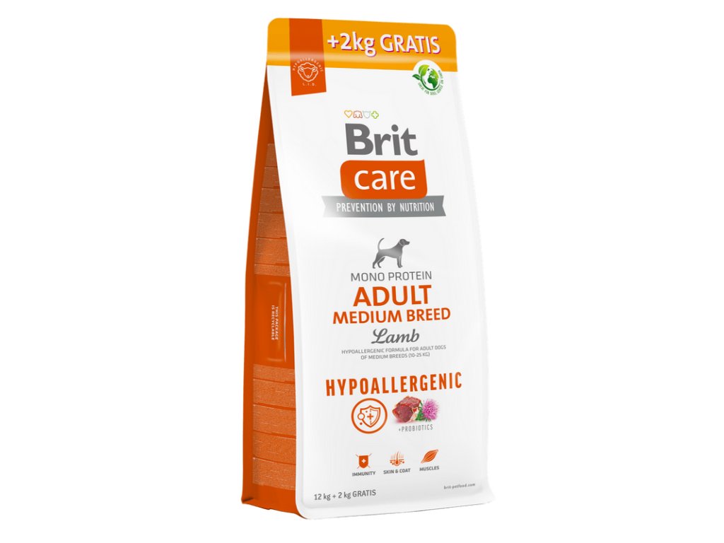 Superprémiové hypoalergenní krmivo Brit Care Dog Hypoallergenic obsahuje jediný zdroj živočišného proteinu. Receptura podporuje prevenci alergických reakcí na krmivo. Složení je vhodné pro psy s citlivým trávením, psy, kterým nevyhovují běžná krmiva a psy, u kterých je vyšší potenciál rozvinutí potravní alergie. Určeno pro dospělé psy středních plemen s hmotností mezi 10 a 25 kg.