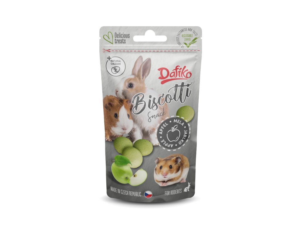 Chutné jablečné piškoty určené jako odměna nebo zpestření běžné denní krmné dávky hlodavců. Díky jemné struktuře se snadno konzumují a jsou vhodné pro pravidelné, ale střídmé podávání.