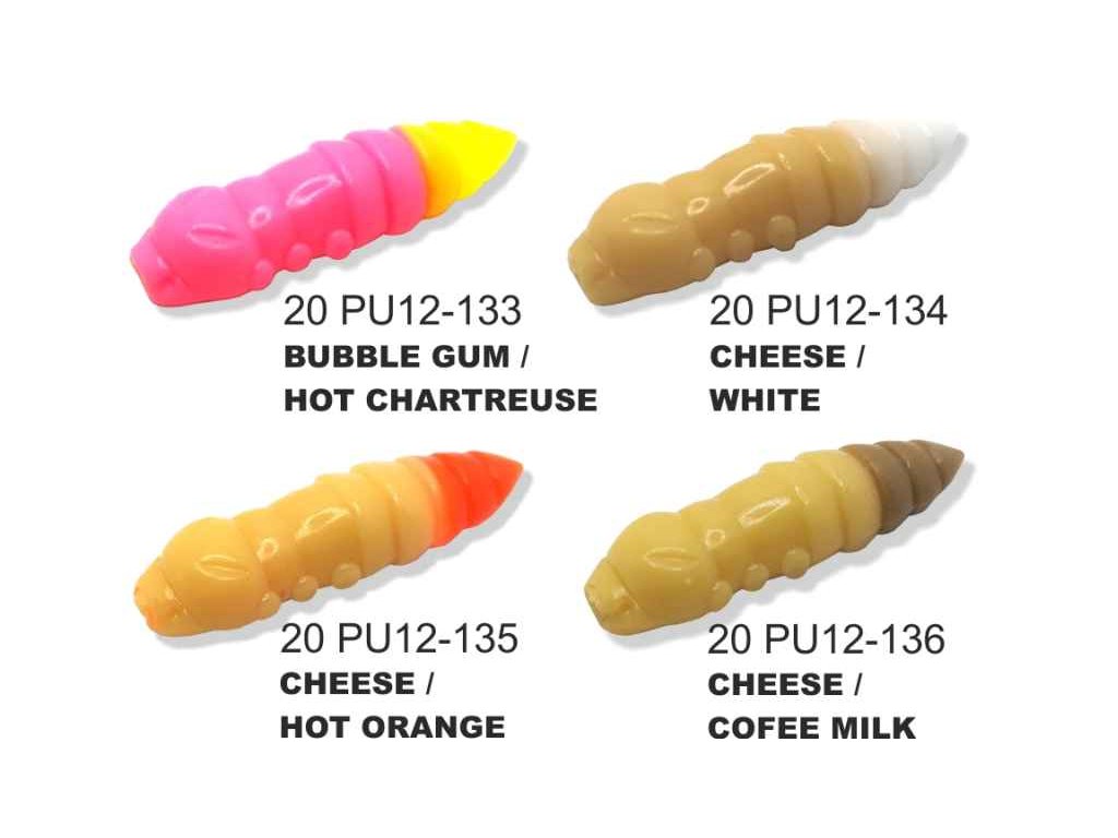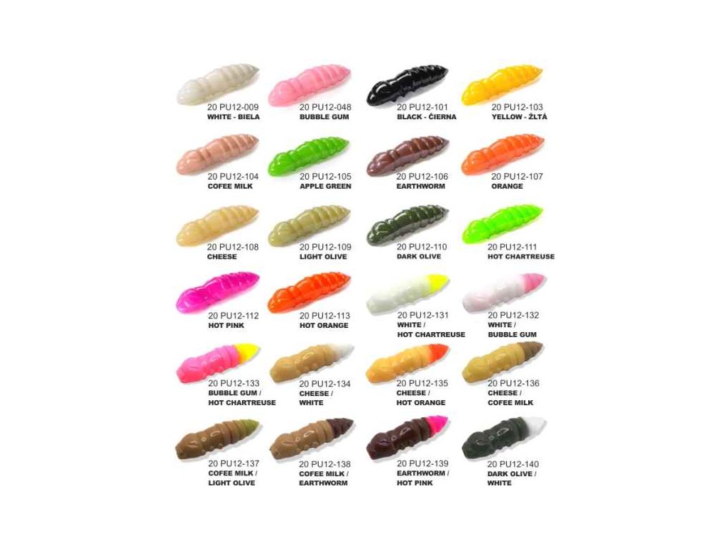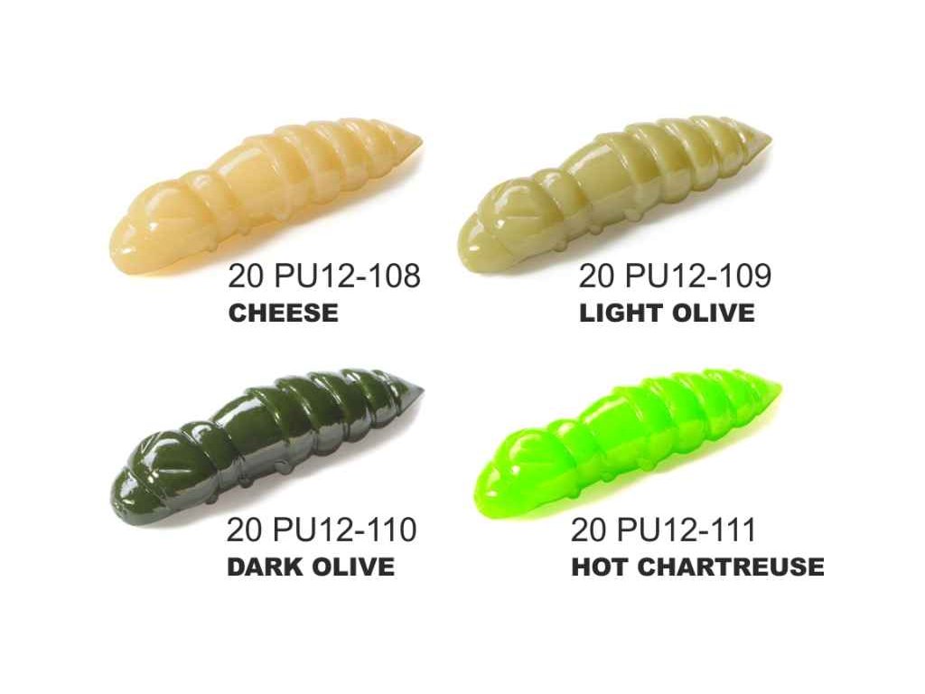 Umělá nástraha FishUP Pupa je velmi oblíbená a působí doslova jako magnet na pstruhy. Je vyrobena z měkkého materiálu, díky čemuž ryba více důvěřuje nástraze a někdy ji dobírá i na vícekrát. FishUP Pupa je poměrně velká nástraha, což umožňuje daleké nahazování a to i za větrného počasí. Stejně jako většina umělých nástrah ve tvaru larvy nemá žádný pohyb. Svou vlastní váhou nebo s malou hlavičkou přepadává vodním sloupcem. Jednou z možností je i vedení larvy těsně pod hladinou. Je jen na vás jakým způsobem bude prezentována. Nástraha je navíc dipovaná což zvyšuje počet záběrů a ve vodě zanechává výraznou pachovou stopu. Přírodní barvy zaručí úspěch v čisté vodě, naopak zářivé budou úspěšné v hluboké nebo kalné vodě.