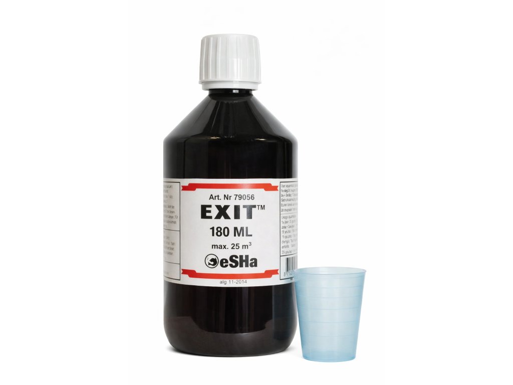Exit se vyznačuje výborným účinkem pro všem druhům „krupičky“ – lchtyophthirius, Oodinum i Importichthyo. V kombinaci s preparátem eSHa 2000 má velmi rychlí léčivý účinek proti Oodiniu. Všechny přípravky firmy eSHa jsou tolerovány i velmi citlivými rybkami.