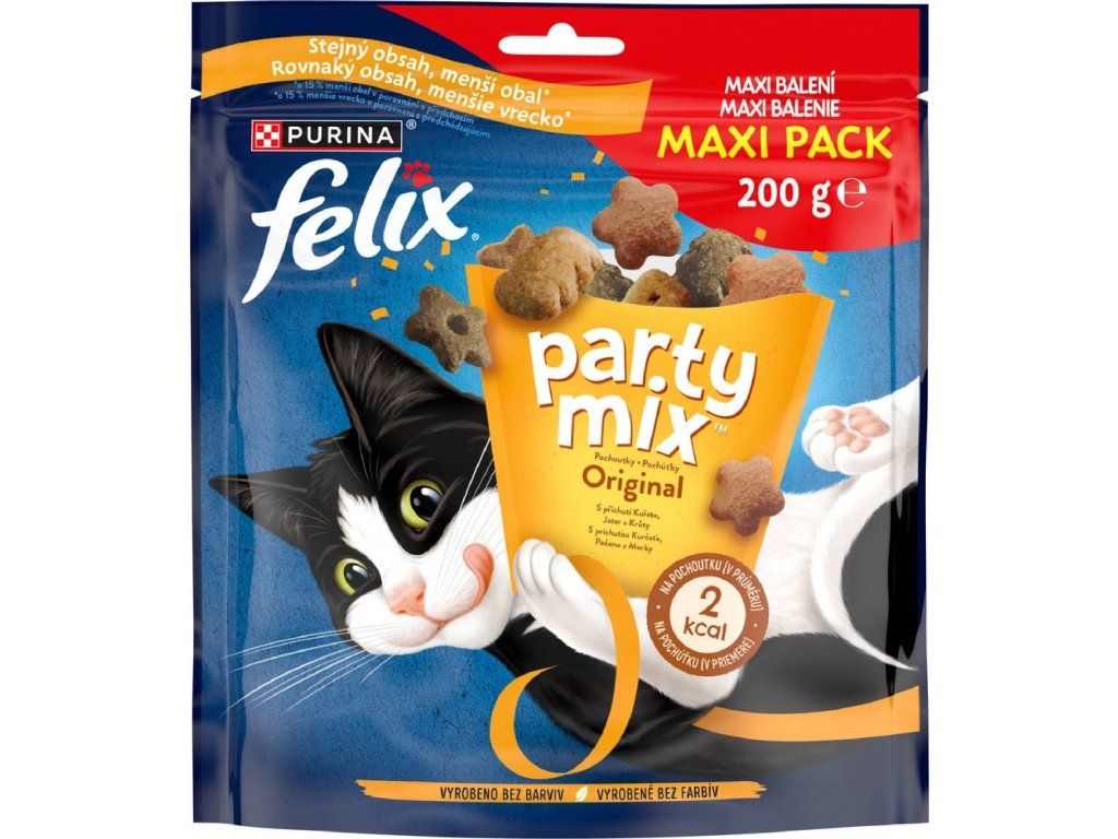 Felix Party Mix jsou pamlsky pro kočky s lákavými příchutěmi, které přinášejí více radostných a hravých chvilek s vaší kočkou. Barevný mix masových pochoutek zaujme vůní, chutí i různorodou texturou, kterou si kočky rychle oblíbí.