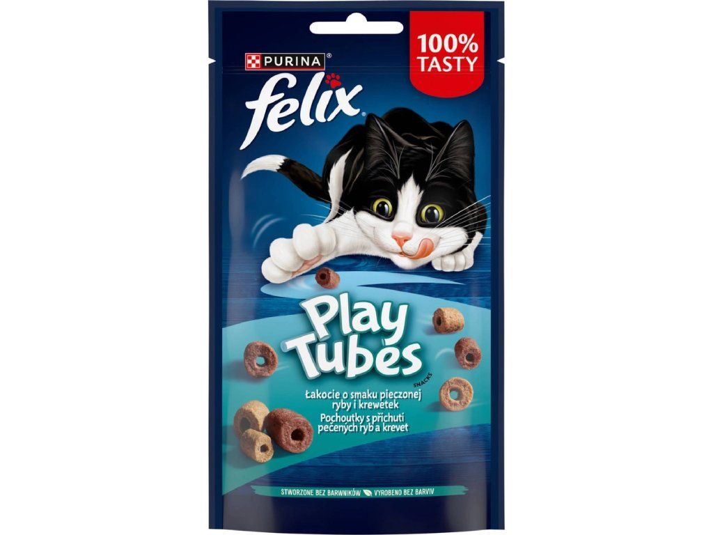 FELIX® Play Tubes jsou hravé pamlsky pro kočky s kulatým tvarem a dvěma různými příchutěmi, které vaše kočka zná a miluje. Díky různým velikostem a známé chuti FELIX® jsou ideální pro interaktivní hru – můžete je házet nebo kutálet a sledovat, jak vaše kočka nadšeně dovádí.