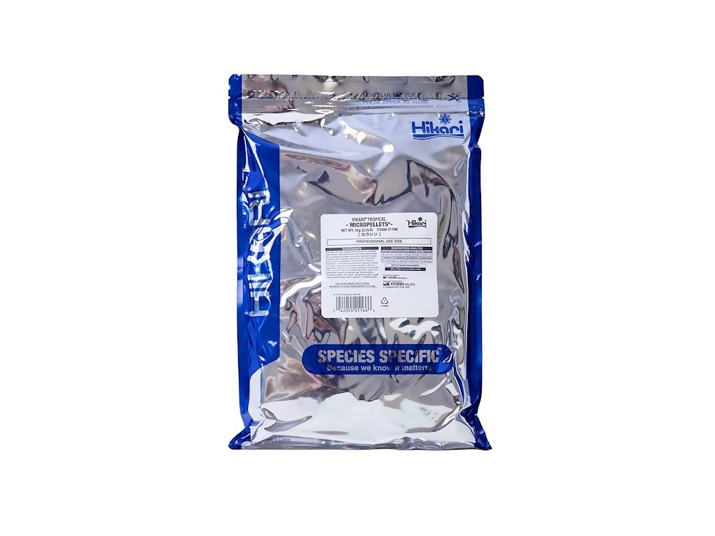 Krmivo se vyrábí s využitím nejmodernějších biotechnologických procesů a dodává tropickým rybkám celoročně zářivé zbarvení. Obsahuje složky rostlinného i živočisného původu s vysokým obsahem vlákniny, vitamínů a minerálů, které svým složením aktivují imunitní systém rybek a tím snižují riziko onemocnění. Napomáhají i snižování hladiny stresu. Hikari Micro Pellets je krmivo plovoucí, pomalu klesající, vhodné pro všechny druhy ryb živící se těsně pod hladinou či ve střední části akvária. Nikdy nekalí vodu! Každá miniaturní granulka je pokryta tenkou mikrovrstvou, která chrání výživné složky uvnitř tak, aby se při rozpouštění nevytratily.