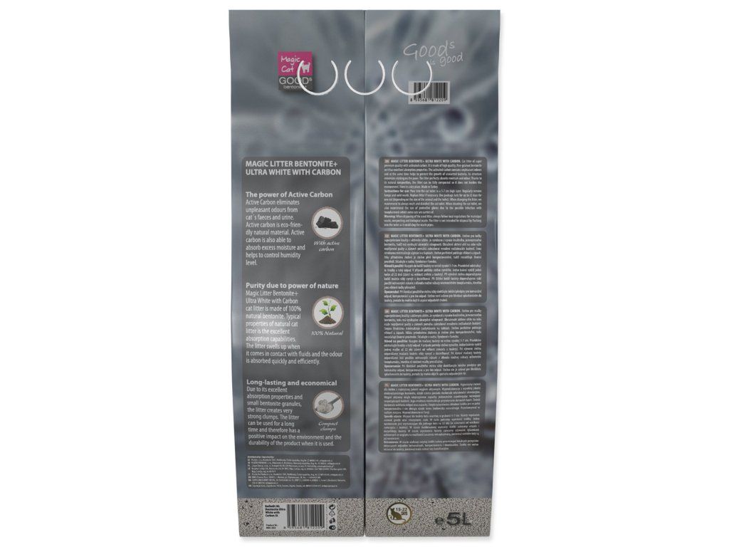 Stelivo pro kočky superprémiové kvality s aktivním uhlím. Je vyrobeno z vysoce kvalitního, jemnozrnného bentonitu, tudíž má vynikající absorpční schopnosti.
