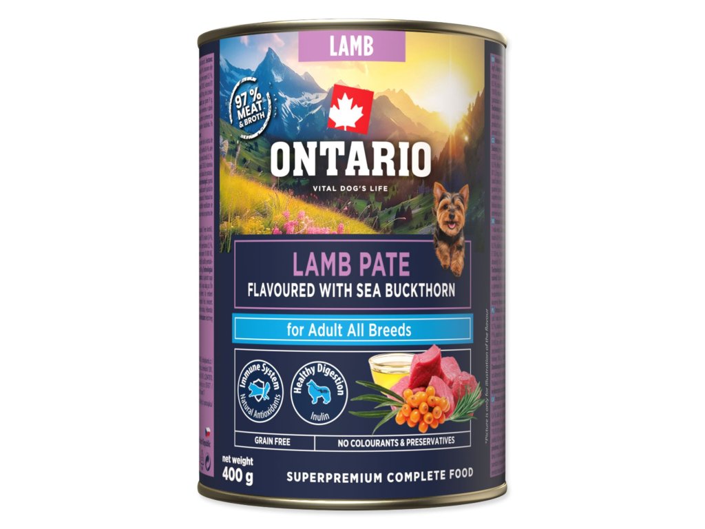 Konzerva Ontario Adult jehněčí pate s příchutí rakytníku 400g