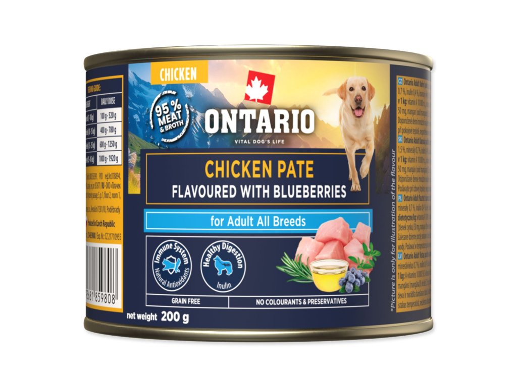 Konzerva Ontario Adult kuřecí pate s příchutí borůvek 200g
