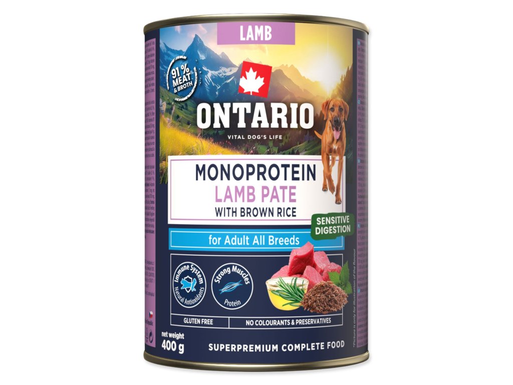Konzerva Ontario Adult monoprotein jehněčí pate s hnědou rýží 400g