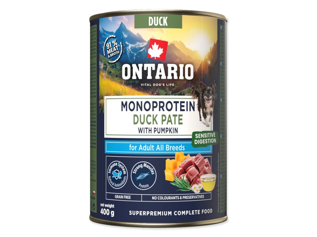 Konzerva Ontario Adult monoprotein kachní pate s dýní 400g