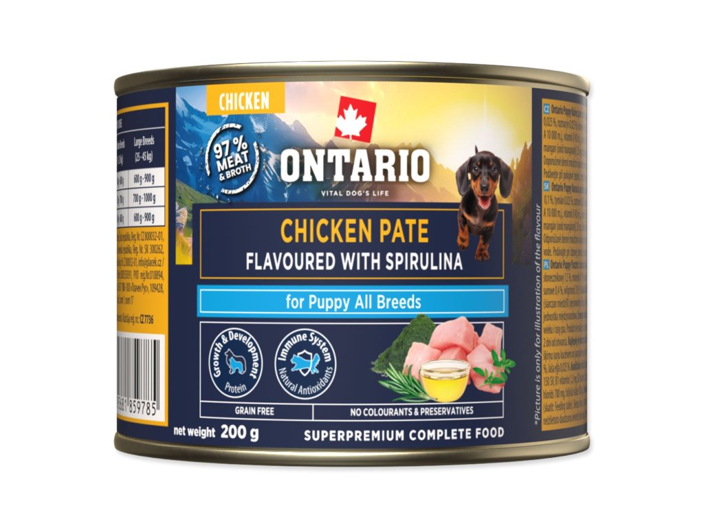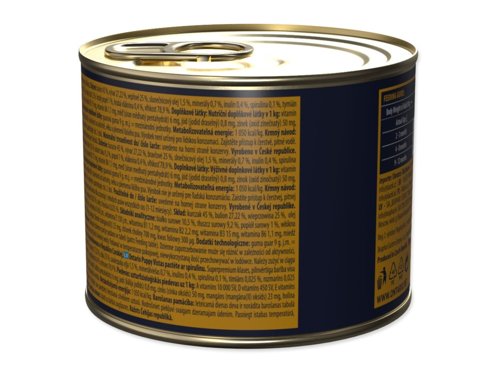 Konzerva Ontario Puppy kuřecí pate s příchutí spiruliny 200g