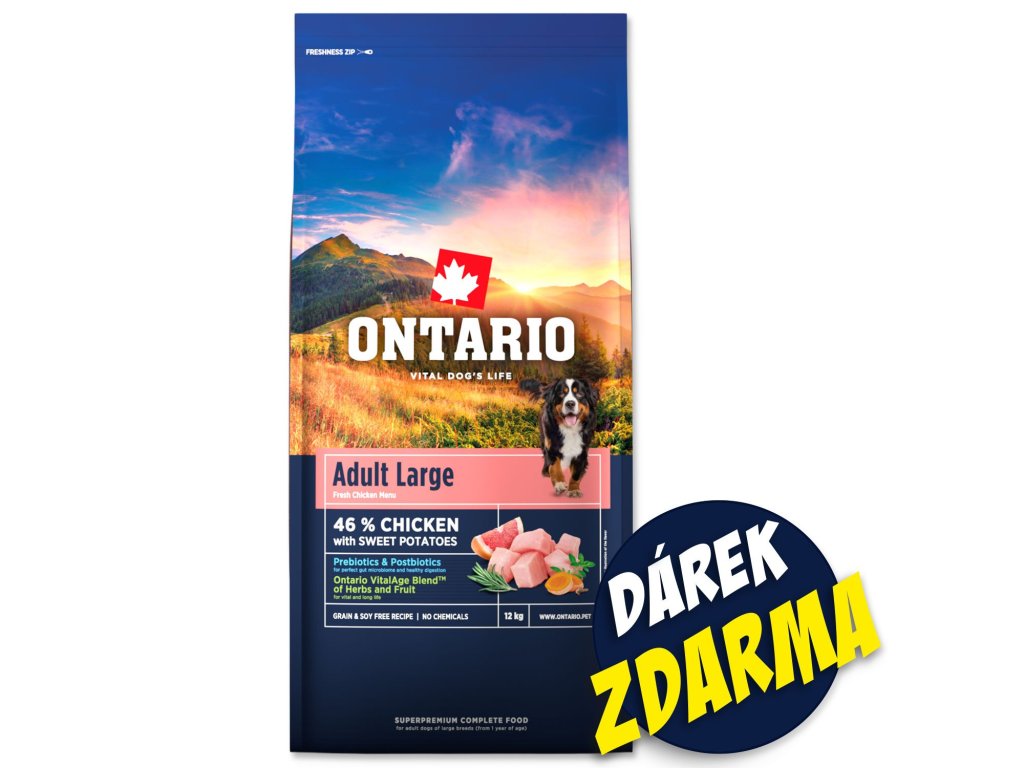 NOVÉ - Krmivo Ontario Adult Large Chicken & Sweet Potatoes 12kg + Konzervy ZDARMA
