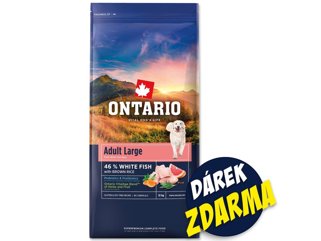NOVÉ - Krmivo Ontario Adult Large Fish & Brown Rice 12kg + Konzervy ZDARMA
