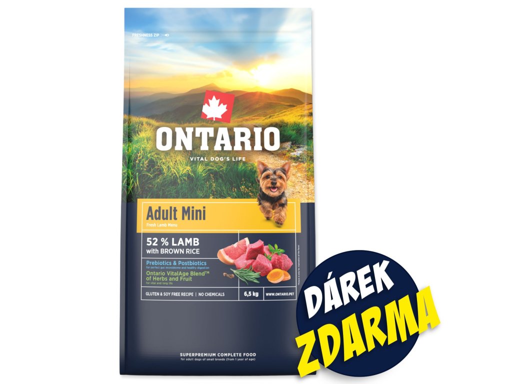NOVÉ - Krmivo Ontario Adult Mini Lamb & Brown Rice 6,5kg + Konzervy ZDARMA