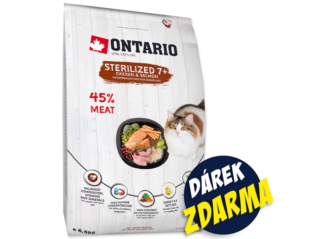 Krmivo Ontario Cat Sterilised 7+ Senior 6,5kg + Kapsičky ZDARMA