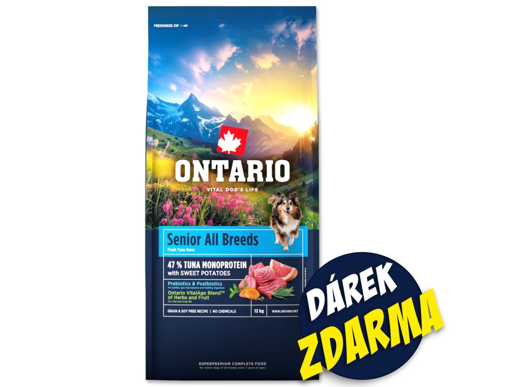 NOVÉ - Krmivo Ontario Senior All Breeds Monoprotein Tuna & Sweet Potatoes 12kg + Konzervy ZDARMA