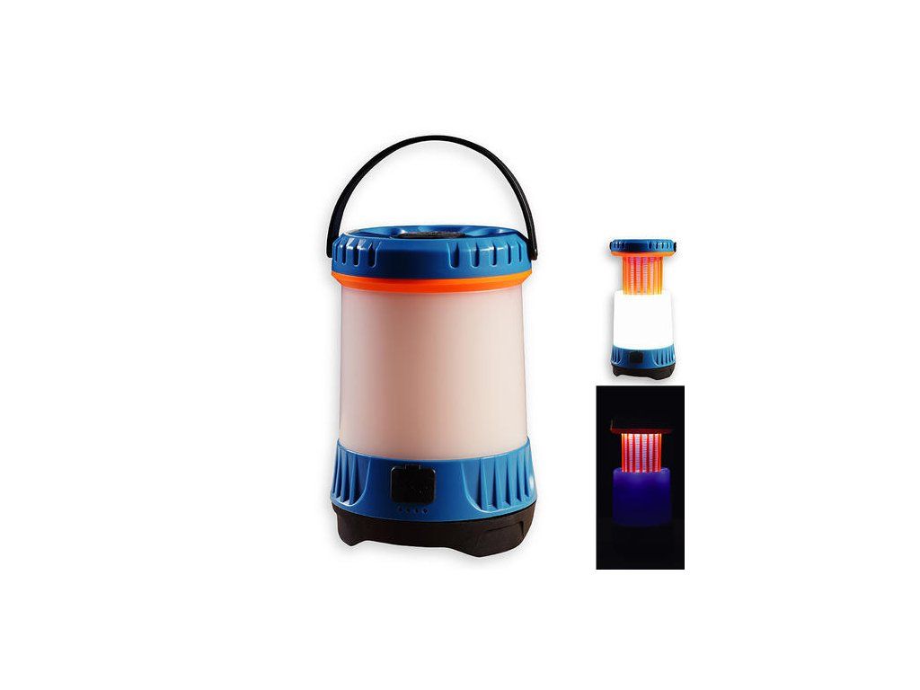 Multifunkční přenosná kempingová dobíjecí lampa s funkcí lapače hmyzu a powerbanky.
