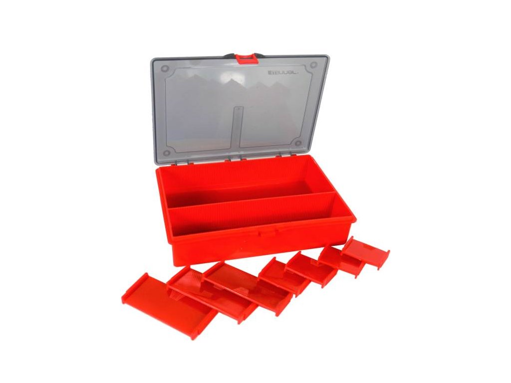 Method feeder box obsahuje šest malých přehledných krabiček s rozměrem 10,5 x 6,5 x 2,5cm. Tyto malé krabičky mají různý počet přihrádek a to 1,2,3,4,6,8. Ideální pro použití na drobnou rybářskou bižuterii. Posuvné přihrádky dobře poslouží při nastavování úložný prostor. Box je vybaven s čtyřmi krátkými a třemi dlouhými přihrádkami. V takovém pouzdře budete mít vždy vše uloženo přehledně a rychle najdete co potřebujete. Ideální pro lov na těžko, plavanou, feeder, method feeder nebo přívlač. Rozměr celého pouzdra je 27x20x5,5cm.