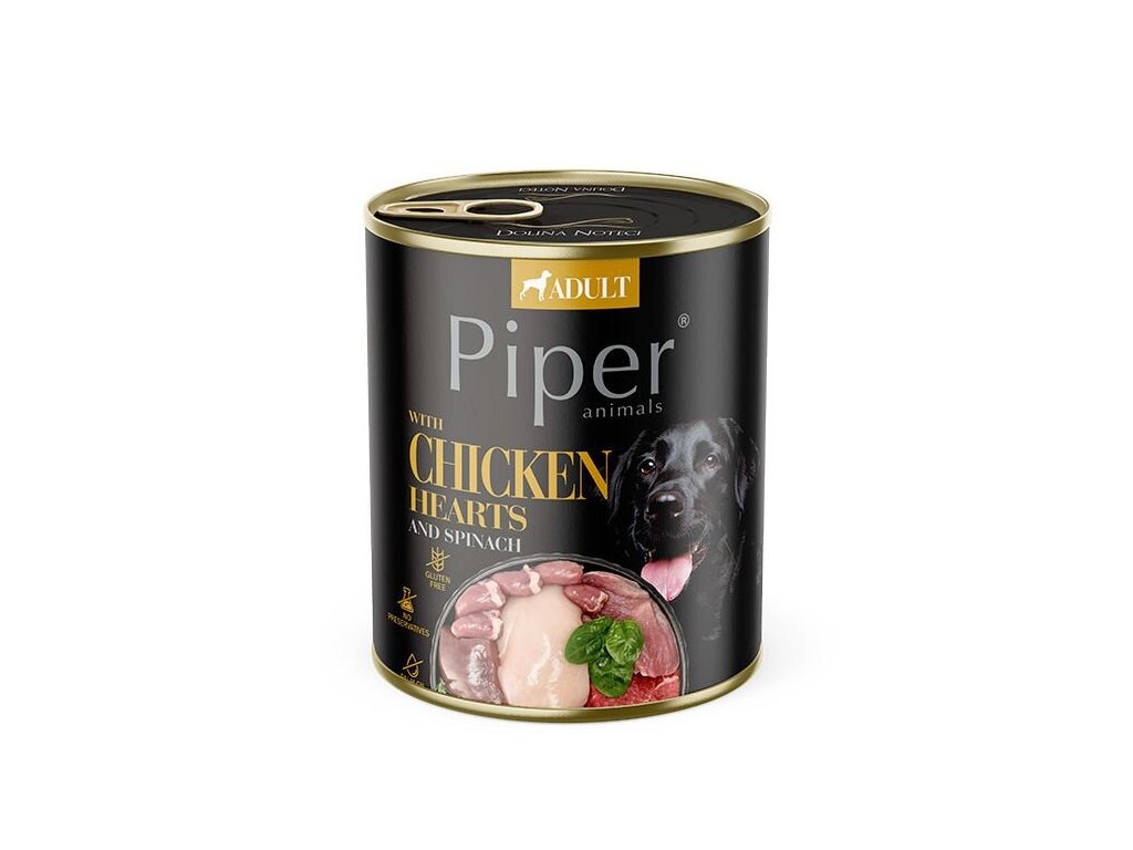 NEW PIPER s kuřecími srdíčky a špenátem, konzerva pro psy