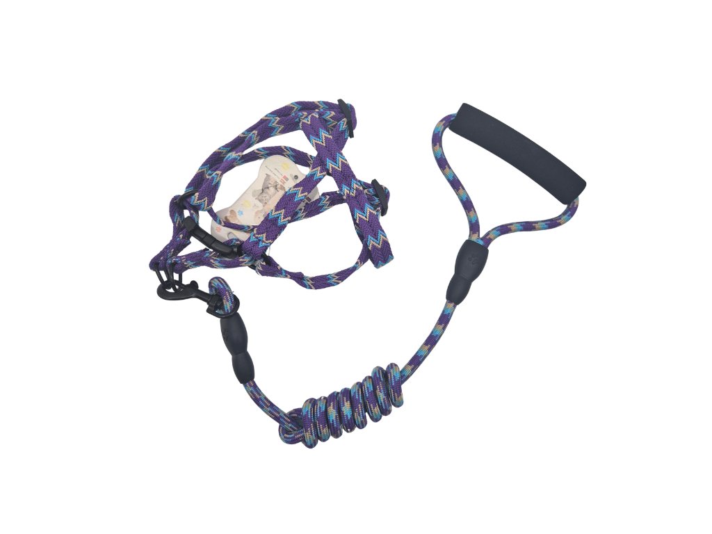 Set postroje a lanového vodítka s polstrovanou rukojetí – Velikost M