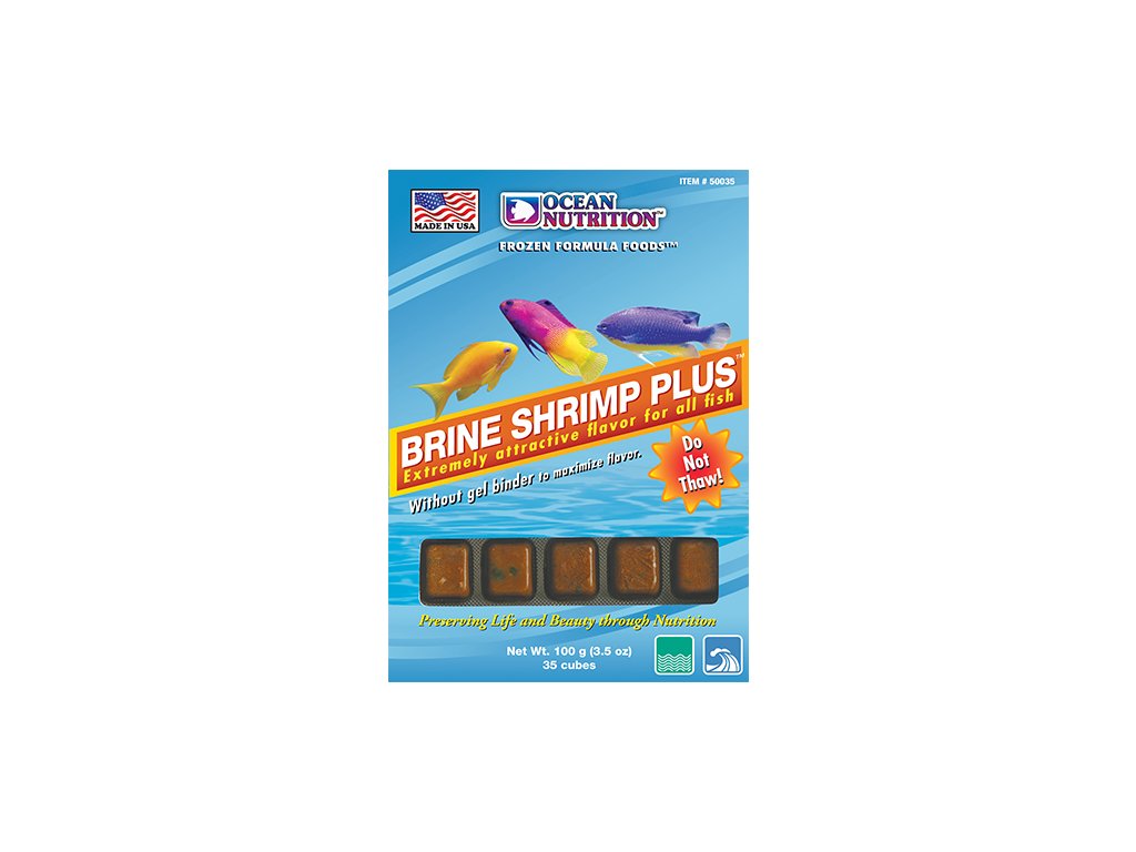 Vynikající mražené krmivo obsahující dospělce artémií, obsahuje čerstvé mořské krmivo jako jsou rybí filety, krill pacifica, mušle, česnek a macro řasy. Což vede k mimořádně atraktivní chuti pro všechny mořské tropické ryby. Ryby milují chuť Brine Shrimp Plus Formula natolik, že při krmení vzniká opravdové krmné šílenství. Tato prémiová směs obsahuje čerstvé mořské krmivo, česnek a jemné rozpustné mikroživiny, jako jsou vitamíny, imunostimulanty, karotenoidy a atraktivní přírodní chutě.