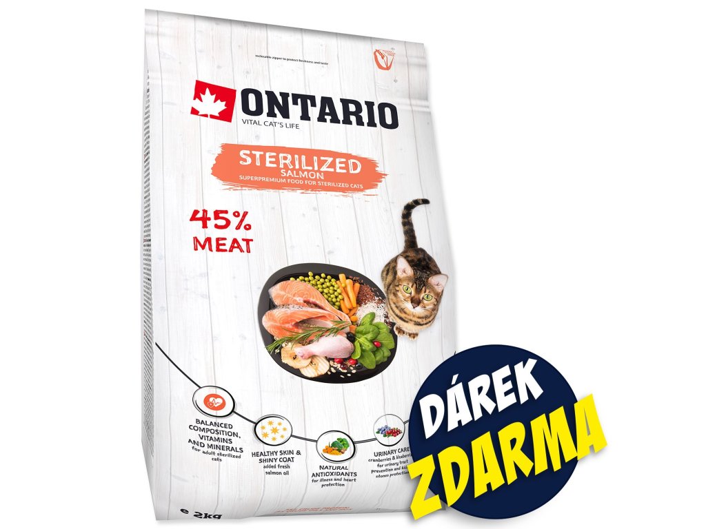 Krmivo Ontario Cat Sterilised Salmon 2 kg + Kapsičky ZDARMA