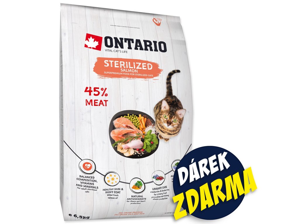 Krmivo Ontario Cat Sterilised Salmon 6,5 kg + Kapsičky ZDARMA