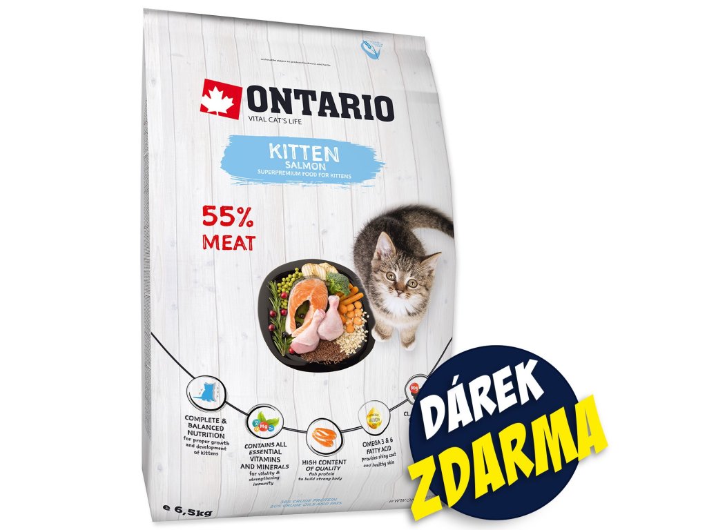 Krmivo Ontario Kitten Salmon 6,5 kg + Kapsičky ZDARMA