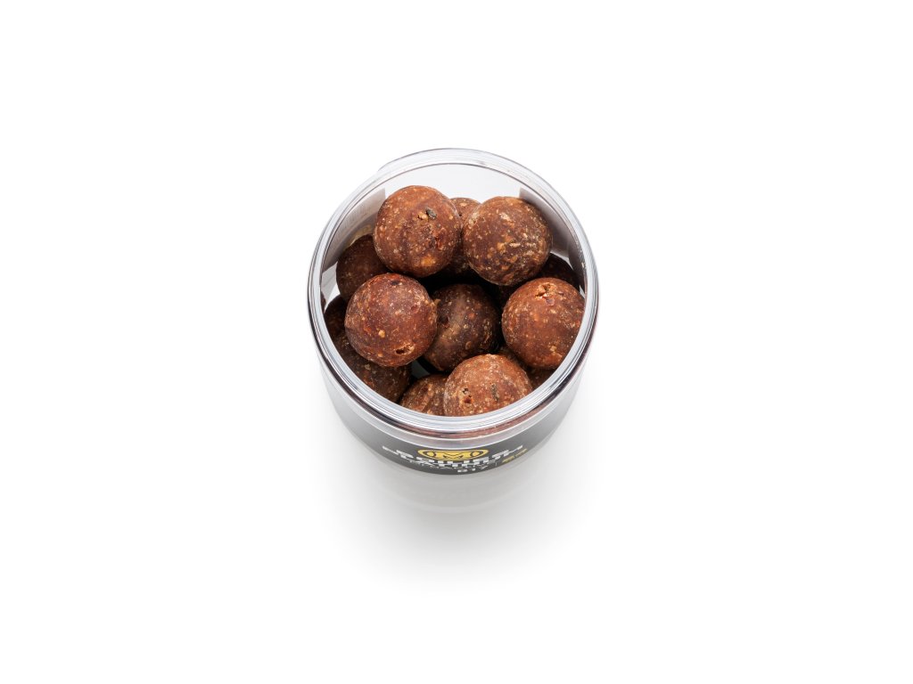 Toto netradičně postavené boilies představuje skutečně těžký kalibr pro vaše rybářské výpravy. Základ tvoří nejkvalitnější rybí moučky, doplnění výraznou porcí krillu a krevet. Chuť je zpočátku velmi sladká a následně přichází v silně pálivou. Intenzivní aroma mořských komponent a kořeněných výtažků je dokresleno mírným nádechem ovocného mixu vybraných bobulovin. Tato nástraha během ročního testování na nejrůznějších lokalitách překonala veškerá očekávání. Výborné výsledky dává celoročně včetně brzkého jara.Boilies ProActive má téměř identické složení se současnými řadami Platinum a Excellent. Jediný, avšak velmi důležitý rozdíl je v použití pojiv a vytvrzovacích složek. Upravena a kontrolována je i hrubost mixu. Výsledná struktura je proto jemnější než u standardních řad boilies. Speciální technologie výroby je výrazně odlišná od výroby běžných boilies. Provedení ProActive se vyznačuje perfektní postupnou a poměrně rychlou rozpustností i ve studené vodě. Doba úplného rozpadu výrazně závisí na proudu, aktivitě ryb i teplotě vody. Během několika minut po vhození do vody se začne povrchová vrstva pozvolna rozpouštět. Střed zůstává stále pevný až do úplného rozpuštění a rozpadu. Během dlouhodobého testování ideální struktury a způsobu rozpouštění bylo dosaženo mnoha zajímavých úlovků v situaci, kdy na montáži zůstala kulička s průměrem menším než 10mm, avšak stále v kompaktním tvaru a pevně držící na vlasové montáži.