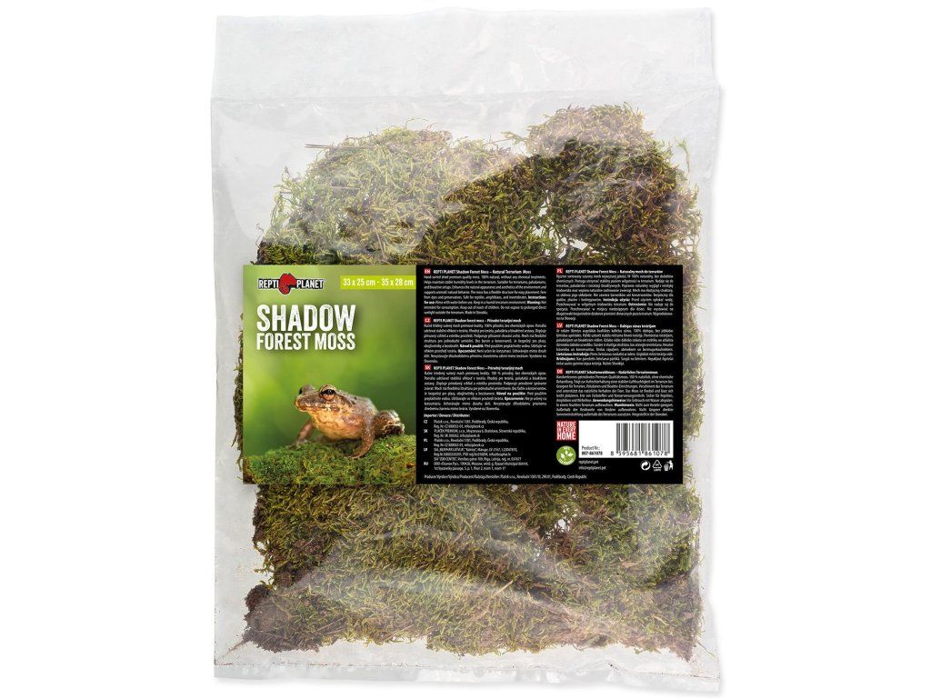 Shadow Forest Moss je přírodní sušený mech, který po navlhčení znovu získá objem a pomáhá zadržovat vlhkost v teráriu. Díky tomu podporuje stabilnější mikroklima, což ocení hlavně druhy vyžadující vyšší vzdušnou vlhkost.
