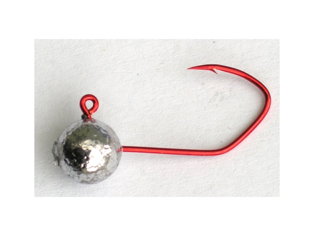 JIG koule bez nálitku, háček č.8 červený, váha 0,3 g / 1ks, kvalitní jiggový háček s olověnou zátěží, používá se při ultralehké přívlači na napíchnutí a zatížení různých pryžových mininástrah, (twister, banjo, nymfa ..).