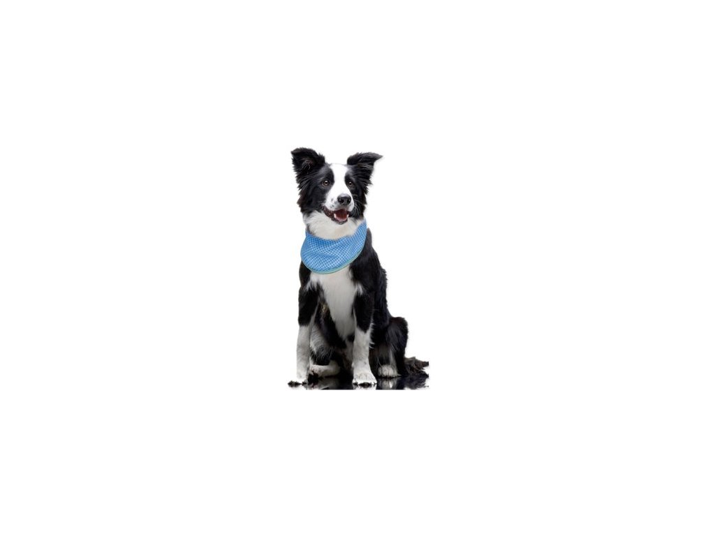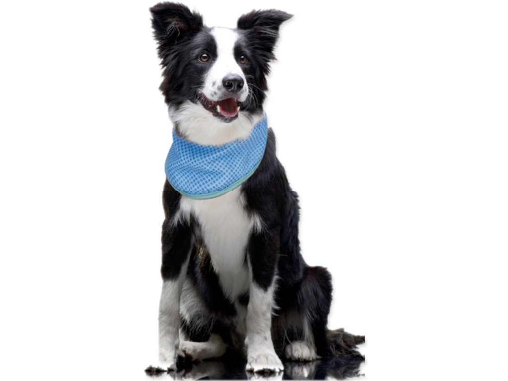 Šátek stačí namočit do studené vody, lehce vyždímat a nasadit psovi na krk.