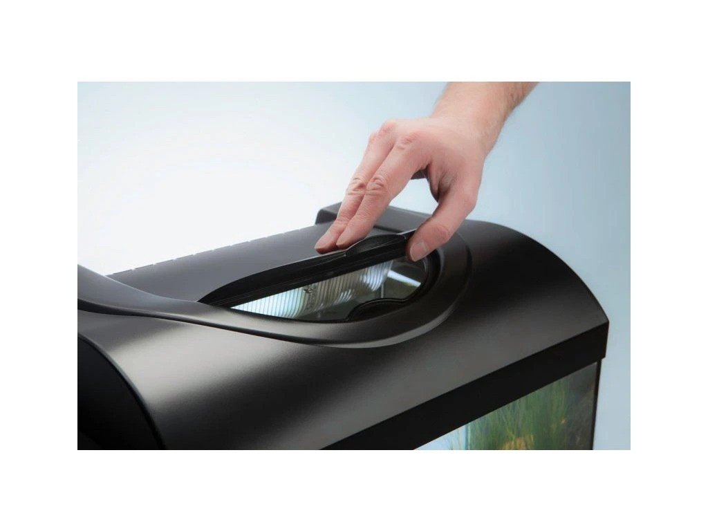 Kryt je vyroben pomocí moderních technologií a nabízí skvělou kombinaci funkčnosti a stylu. Je bezpečný ve vlhkém prostředí díky stupni krytí IP 67 a obsahuje úsporné LED osvětlení s vysokým světelným výkonem a energetickou účinností A+. Díky nastavitelnému úhlu dopadu světla lze dosáhnout ideálního nasvícení celé nádrže. Kryt je vybaven klapkou pro snadné krmení rybiček a skrytými vývody pro filtraci i topení.