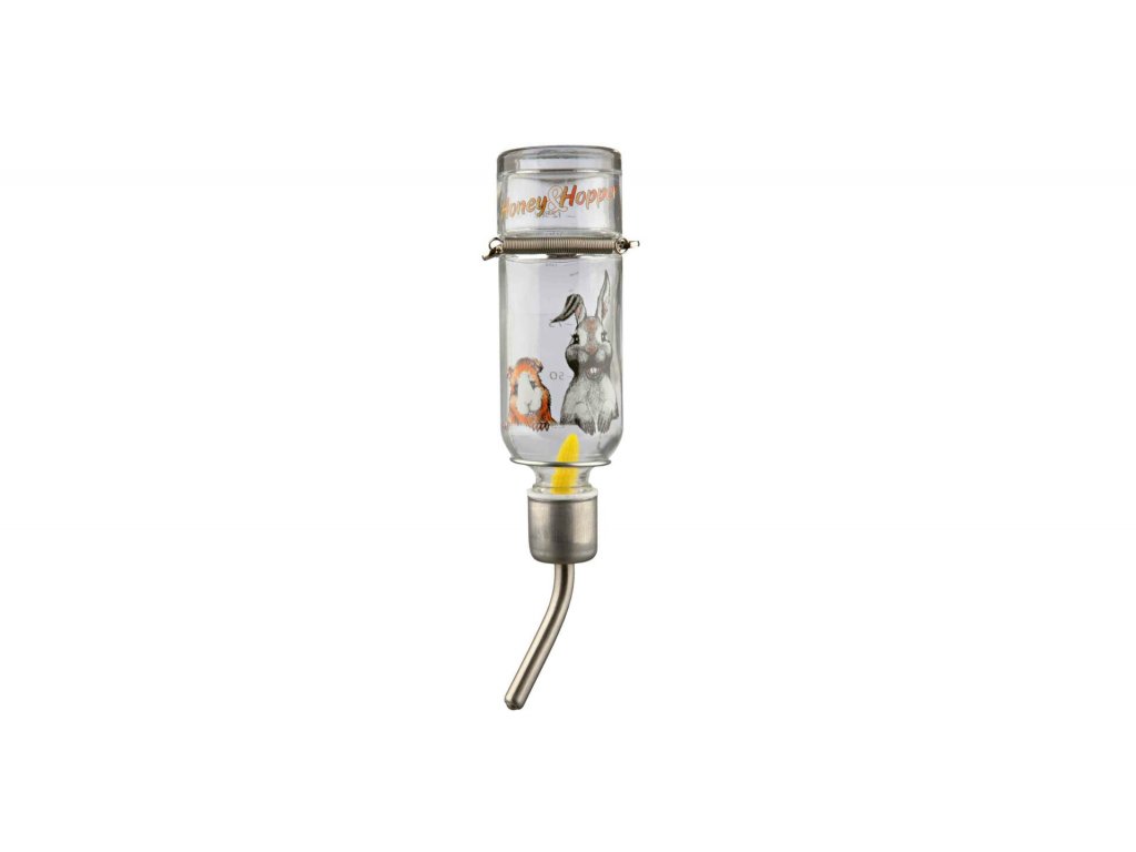 Skleněná napáječka Honey & Hopper s kovovým pítkem pro pískomily a křečky 125 ml