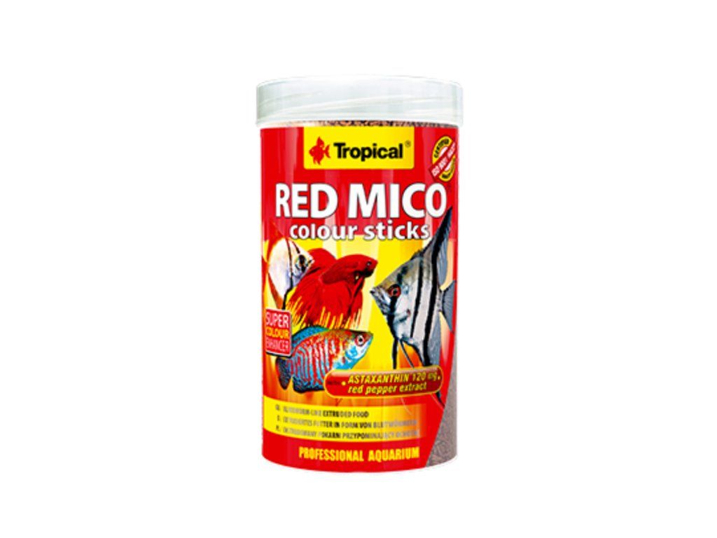 RED MICO COLOUR STICKS je vysoce kvalitní kompletní krmivo s vysokým obsahem bílkovin, určené pro každodenní krmení všežravých a masožravých ryb ze sladkých, mořských i brakických vod. Speciální složení podporuje zdravý růst, optimální kondici a intenzivní vybarvení ryb.