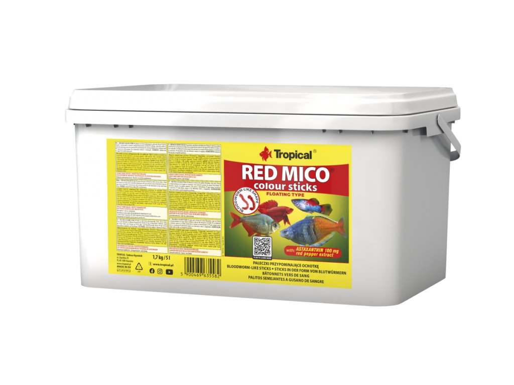 RED MICO COLOUR STICKS je extrudované krmivo ve tvaru patentek určené pro každodenní krmení všežravých a masožravých ryb žijících ve sladké, mořské i brakické vodě.