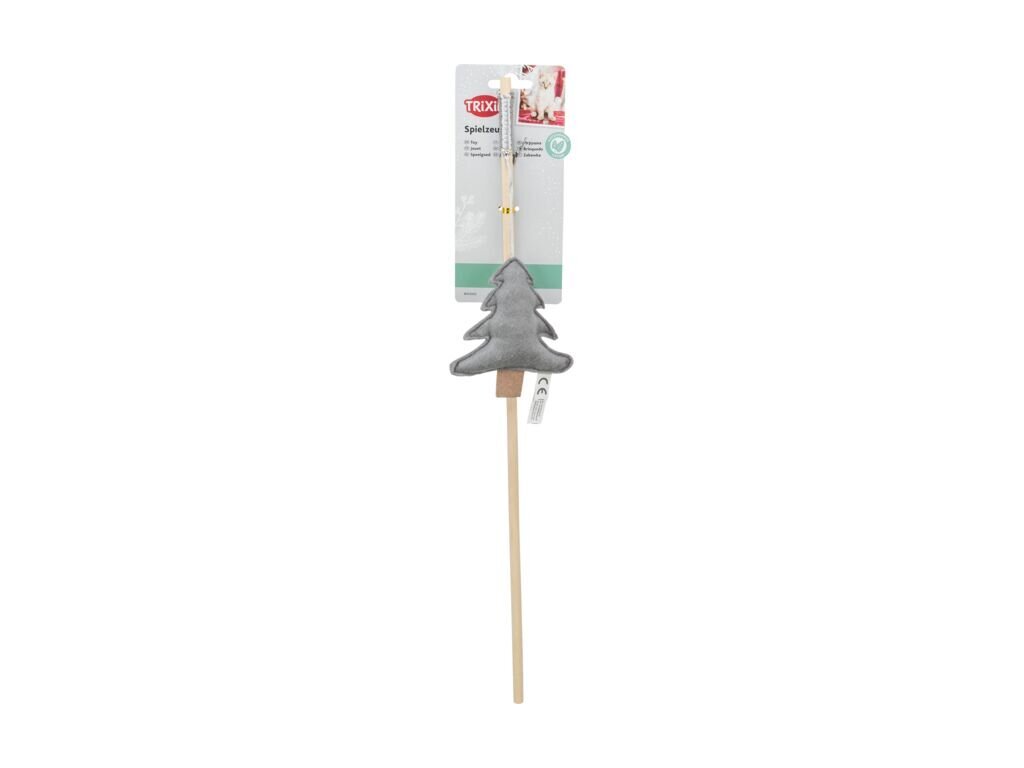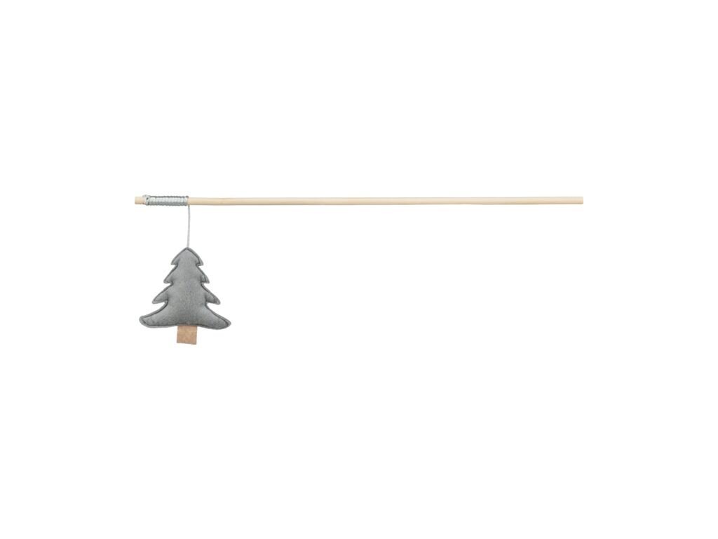 Vánoční hrací prut se stromkem a catnipem, 48 cm, filc/dřevo, šedá